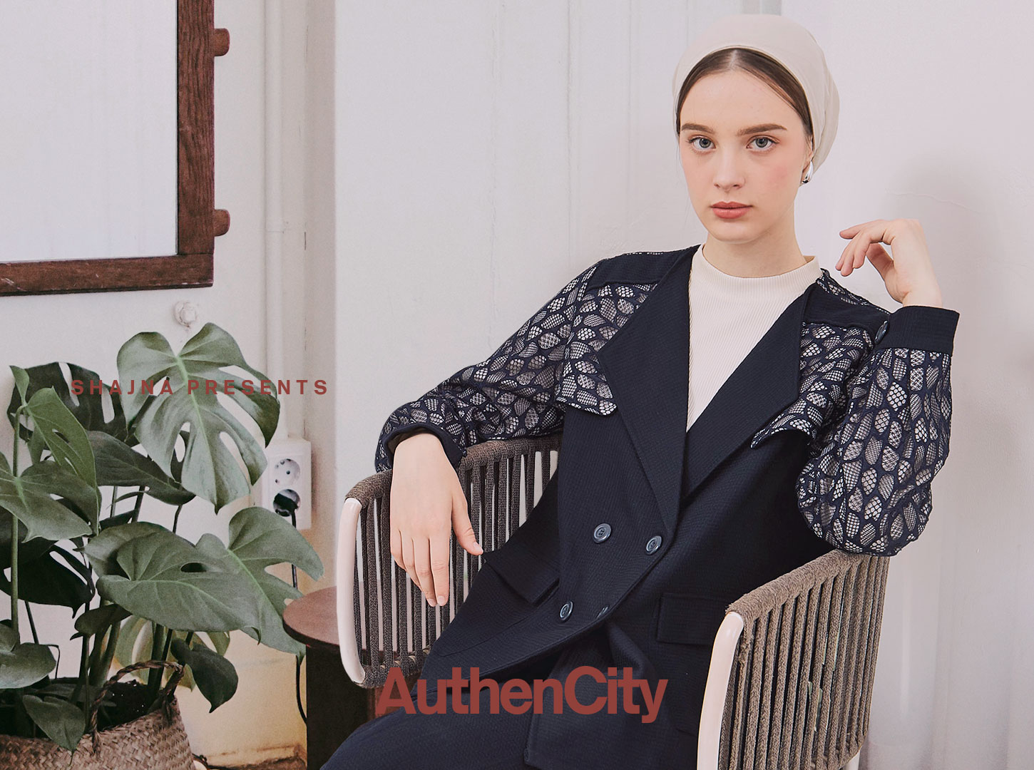 Double breasted coat with lace combination. Comes with flap pockets and back pleat detail. Navy..