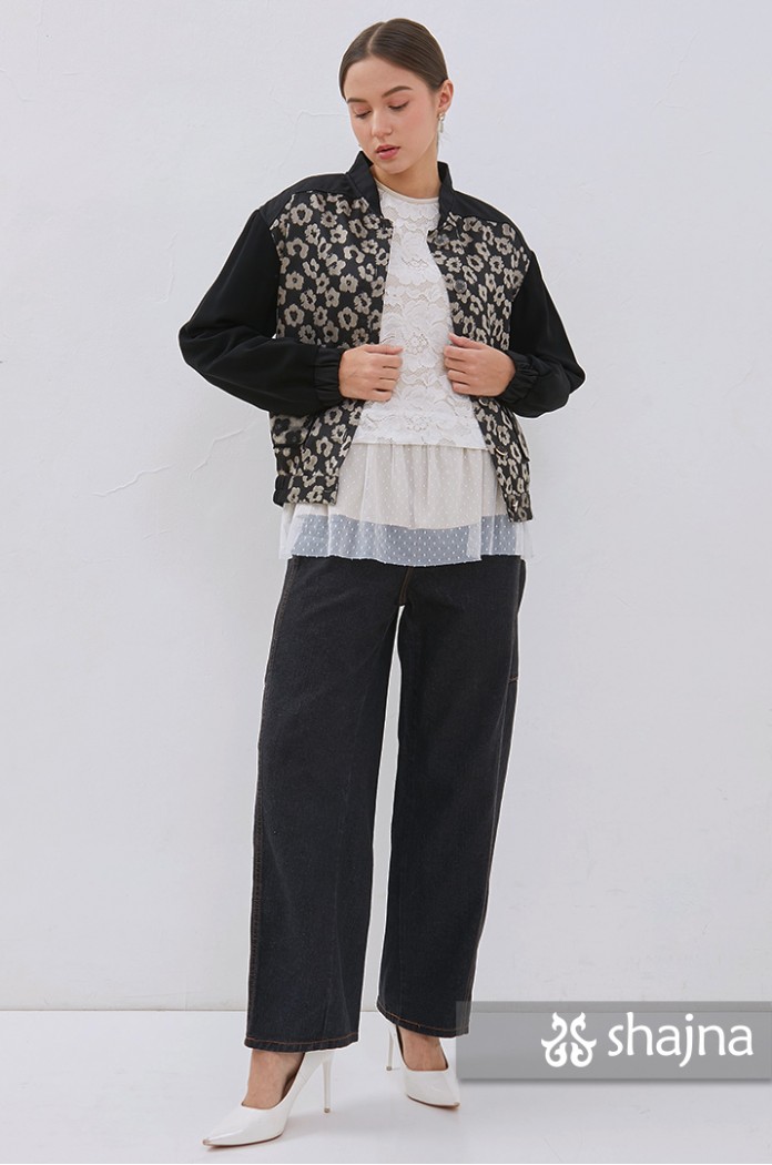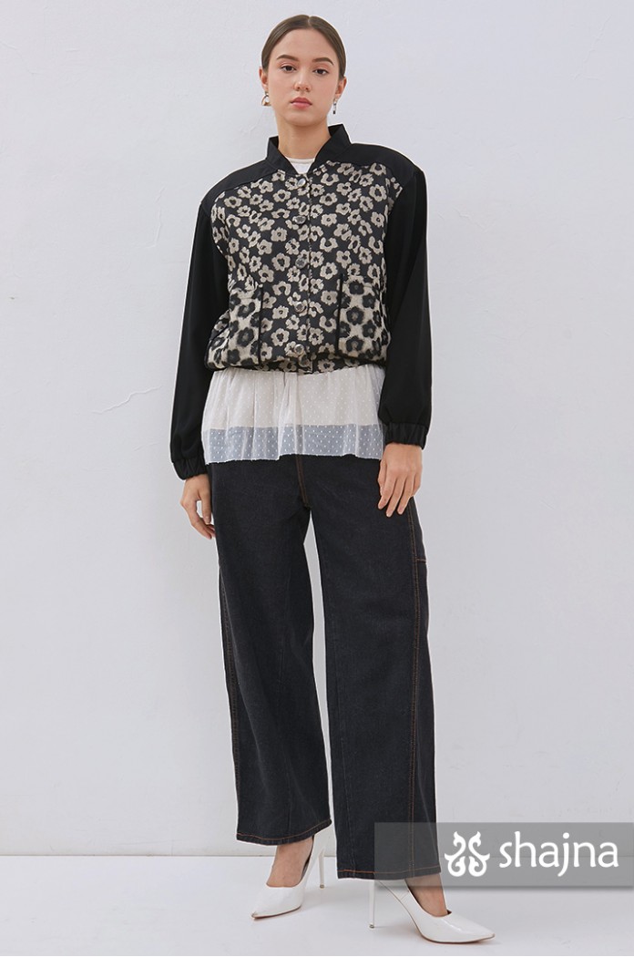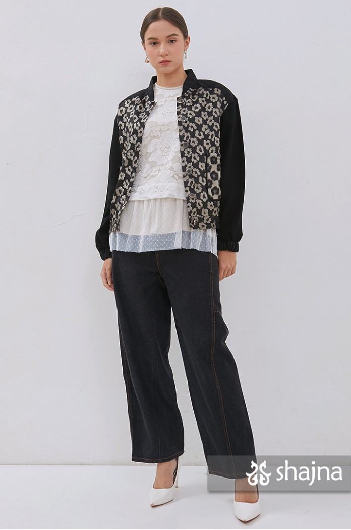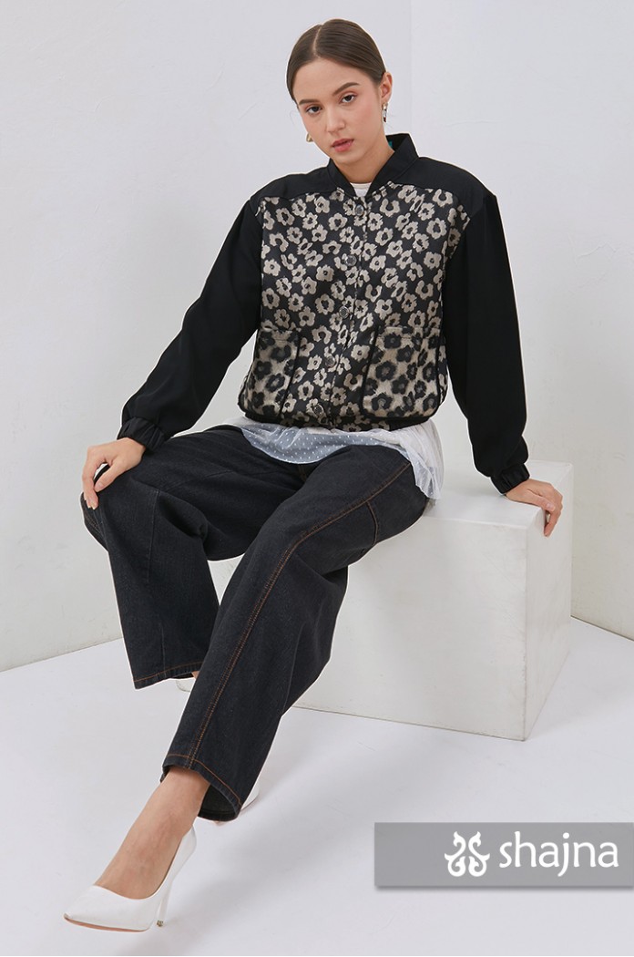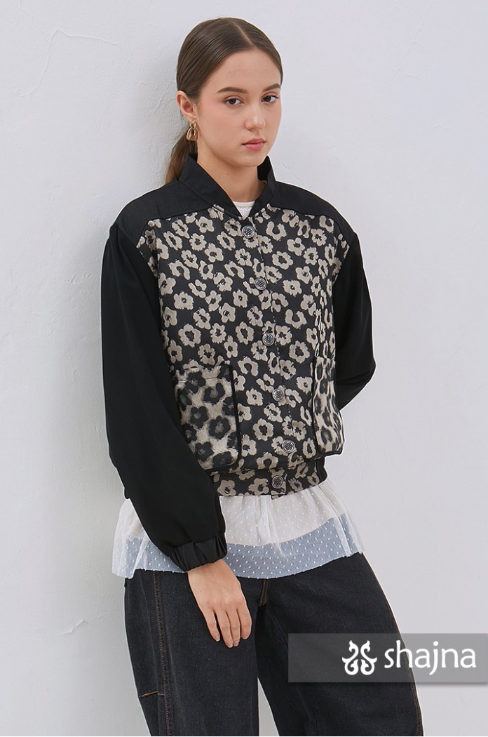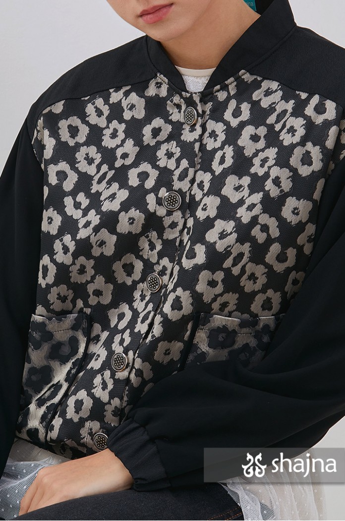 Bomber jacket inspired outerwear in floral motif with front pockets. Fully lined on sleeves for comfort.